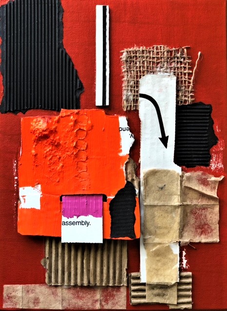ASSEMBLY is a paper assemblage, 8×10, acrylic, collage on canvas board